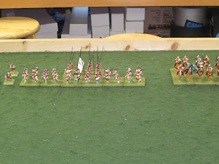 Here are some photos of the play testing we did at Game Nite on 06JUN12 for the Battle of Edgehill using Warhammer ECW rules. It had been about nine years since I'd played these rules, so I was rather rusty on the mechanics.